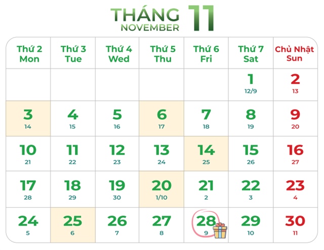 Một số sự kiện công bố thông tin định kỳ trên thị trường chứng khoán đáng chú ý trong tháng 11 gồm có công bố PMI, danh mục có hiệu lực (HNX30), báo cáo kinh tế – xã hội tháng 10, hạn BCTC quý 3 soát xét (không bắt buộc), công bố và hiệu lực danh mục (MSCI), đáo hạn 41I1FB000.
